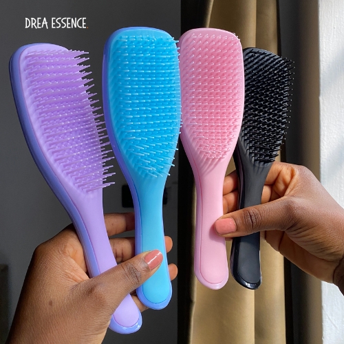 A gentle detangling brush that glides through knots without pulling or breaking your hair. Perfect for Type 4 hair, curls, and coils — on wet or dry hair. Helps reduce pain, shedding, and breakage while leaving your hair smooth and manageable.